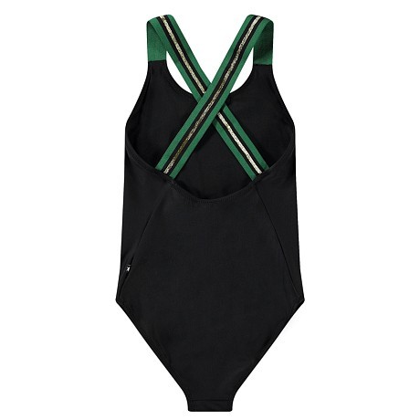 Цельнокроенный купальник Molo черного цвета с зелеными вставками на бретелях и подкладкой из нейлона и эластана – идеальный выбор для девочек от 10 до 11 лет! Купальник с элегантным дизайном и удобной посадкой обеспечит вашей дочурке комфорт и уверенность на пляже и в бассейне. Качество от датского бренда Molo гарантирует долговечность и комфорт при каждом использовании.