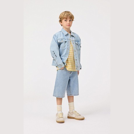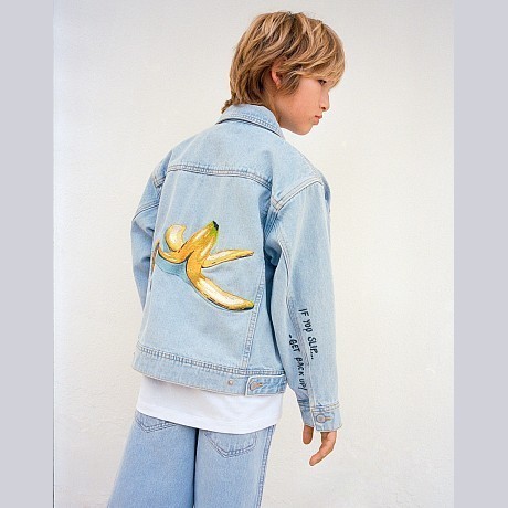 Джинсовая куртка Molo – это идеальный выбор для юных модников! Изготовленная из 50% хлопка, она украшена ярким принтом банана на спине и дополнена удобными карманами. Серо-голубой цвет создает неповторимый стиль, а качественная ткань обеспечивает комфорт и удобство. На фотографиях видна аккуратная застежка на кнопки, удобные карманы с клапанами и яркий принт банана на спине. Качество от бренда из Дании и внимание к деталям делают эту куртку отличным выбором для вашего ребенка!