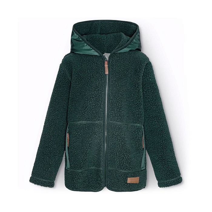 Флисовая куртка для мальчиков темно-зеленого цвета с капюшоном
