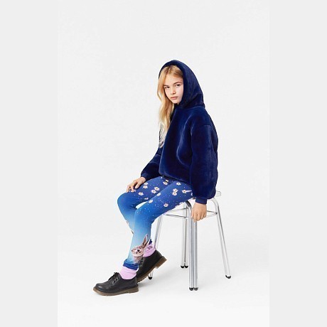 Синие леггинсы для девочек с зайчиками и звездами