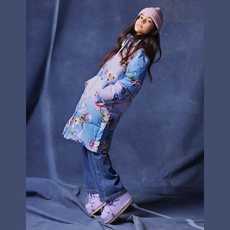 Пальто Molo – это идеальный выбор для девочек! Изготовленное из 50% полиэстера переработанного и 50% полиэстера, оно украшено нежным цветочным принтом с белыми и фиолетовыми цветами на серо-голубом фоне. Элегантный дизайн и качественный состав делают это пальто не только стильным, но и комфортным для вашего ребенка. Быстрая доставка СДЭК по всей России.