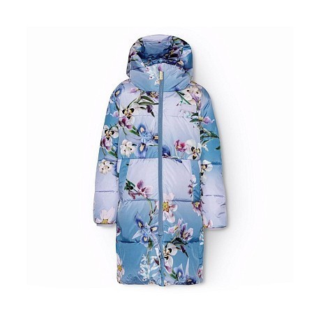 Серо-голубое пальто для девочек Molo с цветочным принтом