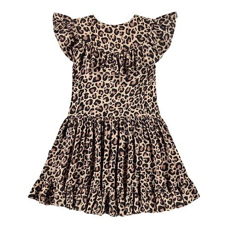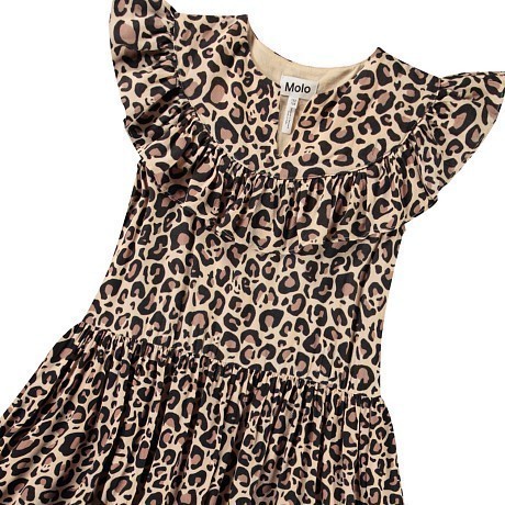 Платье для девочки Molo коричневого цвета с леопардовым принтом – это идеальный выбор для стильных и модных девочек! Изготовленное из 100% вискозы с подкладкой из 100% хлопка, оно идеально подойдет для теплых дней. Легкий леопардовый принт придает платью уникальность и модный вид. На фото видна аккуратная вискозная ткань с ярким леопардовым узором и мягкими оборками по краю. Качество от бренда из Дании и внимание к деталям делают эту модель отличным выбором для вашего ребенка!