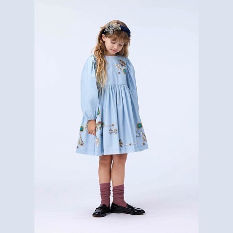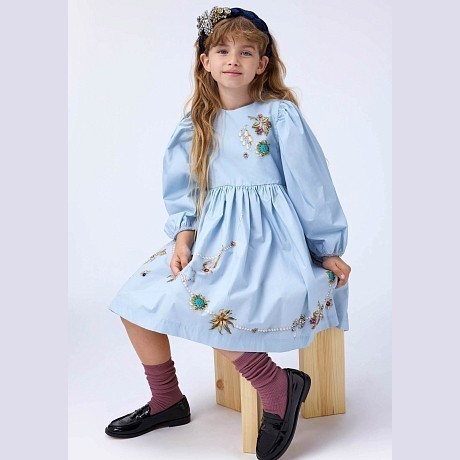 Серо-голубое платье для девочек Molo – это идеальный выбор для летних прогулок! Изготовленное из 100% натурального хлопка, оно украшено изящной вышивкой в виде цветов и бусин. Платье идеально подходит для возраста от 122 до 128 см. Нежная ткань и красивый дизайн делают это платье не только практичным, но и эстетически привлекательным. Быстрая доставка СДЭК по всей России.