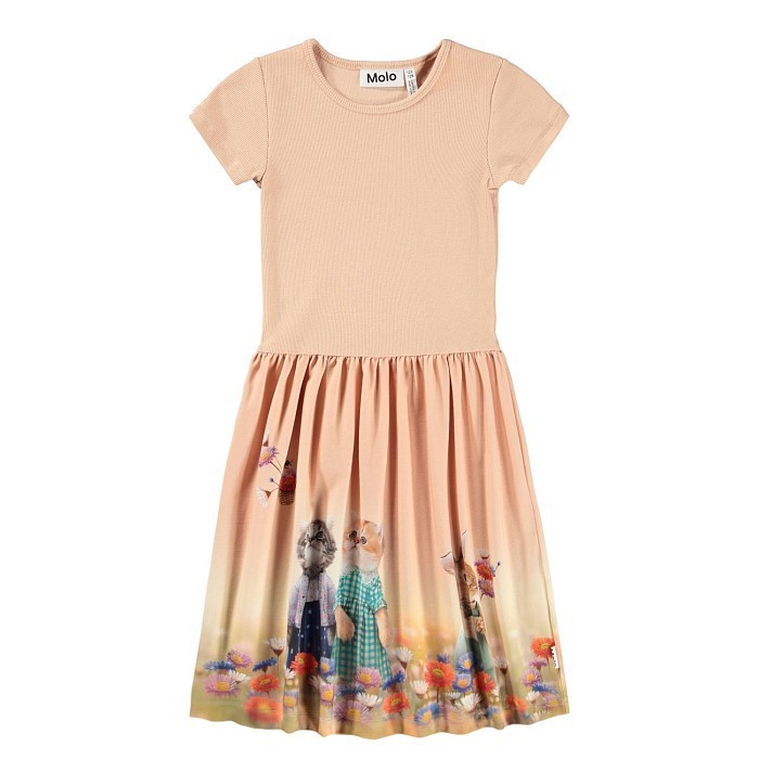 Персиковое платье Molo – это идеальный выбор для девочек! Изготовленное из натурального хлопка и эластана, оно украшено очаровательным принтом с милыми персонажами на фоне цветочного поля. Нежная персиковая основа с яркими деталями создает неповторимое и в то же время уютное настроение. Качество от датского бренда и внимание к деталям делают это платье отличным выбором для вашего ребенка! Быстрая доставка СДЭК по всей России.