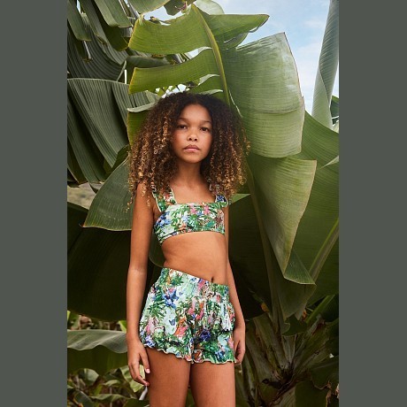 Зеленые шорты купальные для девочек Molo с тропическим принтом