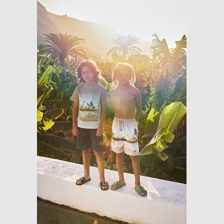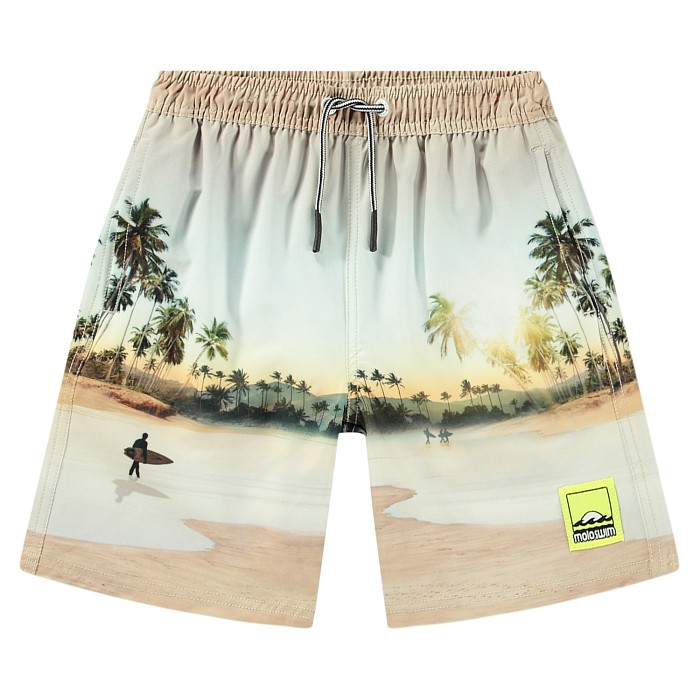 Бежевые шорты купальные для мальчиков Molo с принтом пляжа и пальм