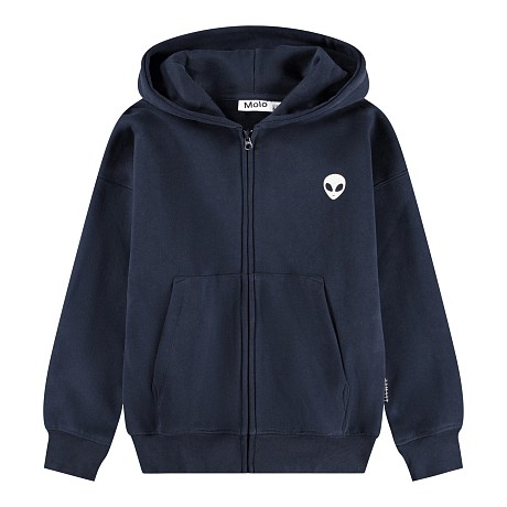 Темно-синяя толстовка Molo – это идеальный вариант для мальчиков! Изготовленная из качественного хлопка с добавлением полиэстера, она обеспечивает мягкость и комфорт. Толстовка украшена небольшим белым алиеном на левой стороне, что добавляет уникальности и модного шарма. Нежная темно-синяя основа с белым алиеном создает неповторимое сочетание цветов, которое идеально подойдет для вашего юного модника. На фотографиях видна удобная застежка-молния и мягкая текстура ткани. Качество от датского бренда Molo и внимание к деталям делают эту толстовку отличным выбором для вашего ребенка!