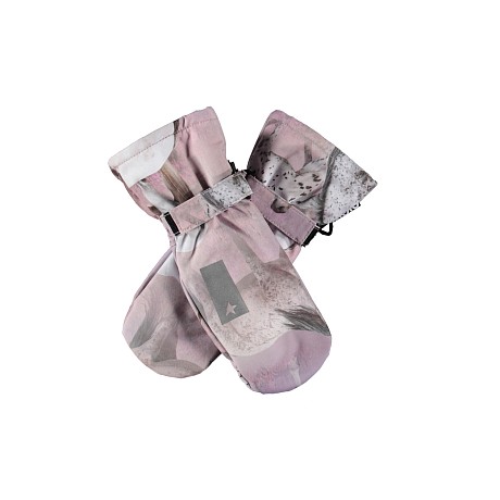 Варежки для девочек Molo – это идеальный выбор для детей от 3 до 12 лет! Изготовленные из 55% полиэстера и 45% полиэстера переработанного, они украшены очаровательным сиреневым принтом с изображением животных и звезд. Эластичная резинка на запястье обеспечивает удобную посадку и комфорт. На фотографиях видна аккуратная резинка по краю и мягкая текстура ткани. Качество от бренда из Дании и внимание к деталям делают эти варежки отличным выбором для вашего ребенка!