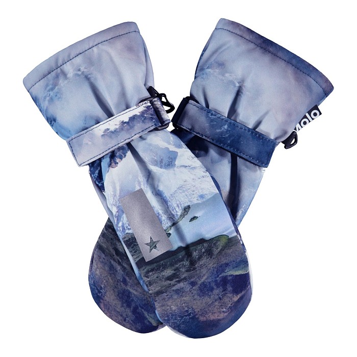 Синие варежки для мальчиков Molo с принтом гор и звезды