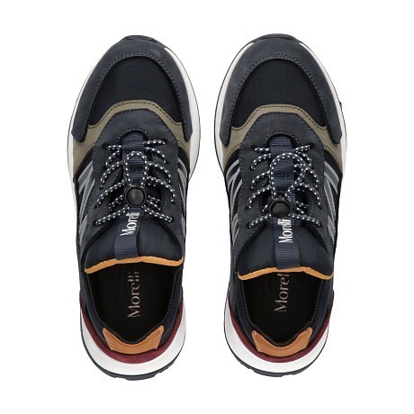 Кроссовки Morelli – это идеальный выбор для активных детей! Изготовлены из высококачественной кожи и термопластичной резины, подкладка также из кожи. Кожаная структура и многослойная подошва обеспечивают отличную амортизацию и комфорт. На фотографиях видны яркие детали: темно-синий цвет, контрастные вставки из бордовой и коричневой кожи, а также перфорированные детали для вентиляции. Кроссовки Morelli – это стиль и качество от итальянского бренда.