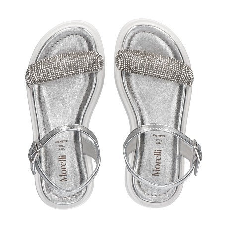 Сандалии Morelli – это идеальный выбор для стильных девочек! Изготовленные из блестящего серебристого верха, они украшены блестками и дополнены удобной подошвой. Бренд Morelli из Италии гарантирует высокое качество и комфорт. На фотографиях видны блестящие элементы на ремешках и блестящая подошва, что делает эти сандалии настоящим украшением для ног девочки.