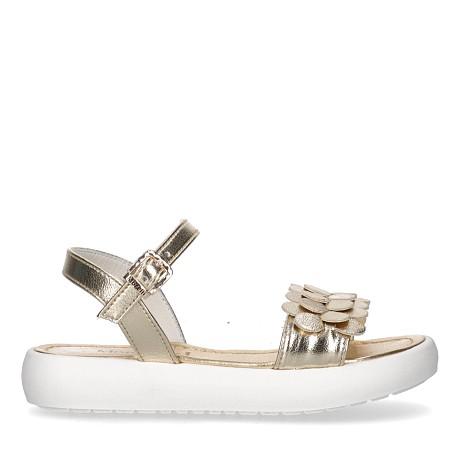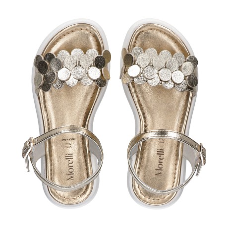 Сандалии Morelli золотистого цвета – идеальный выбор для маленьких модниц! Изготовлены из высококачественной кожи и термопластичной резины, они украшены изящными цветочными аппликациями. Удобная посадка и мягкая подкладка делают эти сандалии комфортными для ножек вашего ребенка. На фотографиях видны блестящие детали, цветочные аппликации и удобные ремешки. Качество и стиль от итальянского бренда Morelli – отличный выбор для вашего ребенка!