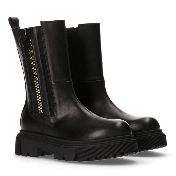Черные кожаные сапоги с молнией и резинкой