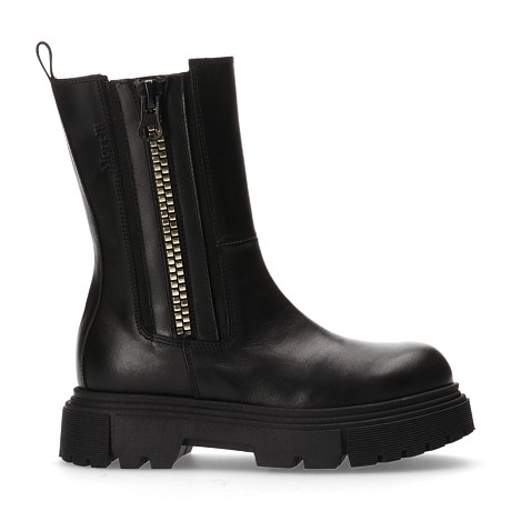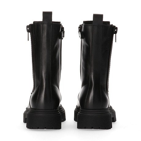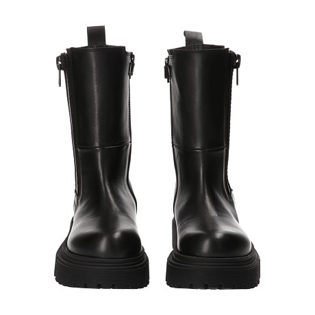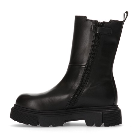 Черные кожаные сапоги с молнией и резинкой