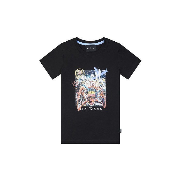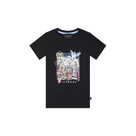 Черная футболка для мальчиков John Richmond с принтом рок-музыканта