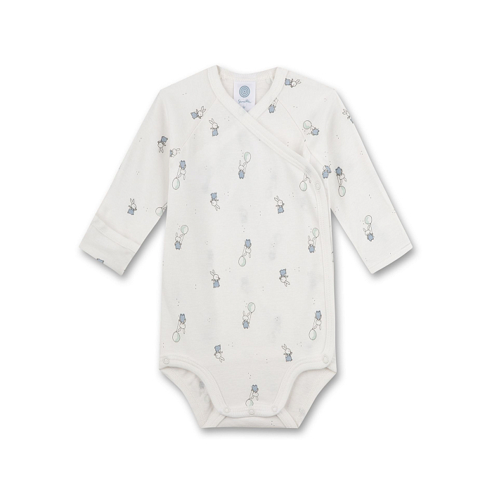 Боди Sanetta – это идеальный выбор для мальчиков! Изготовленное из 100% хлопка, оно украшено очаровательными молочными зайчиками с воздушными шариками. Нежная молочная основа с яркими голубыми зайчиками создает приятное и в то же время уютное настроение. На фотографиях видна аккуратная голубая контрастная окантовка по краю и мягкая текстура ткани. Качество от бренда из Германии и внимание к деталям делают эту одежду отличным выбором для вашего малыша!