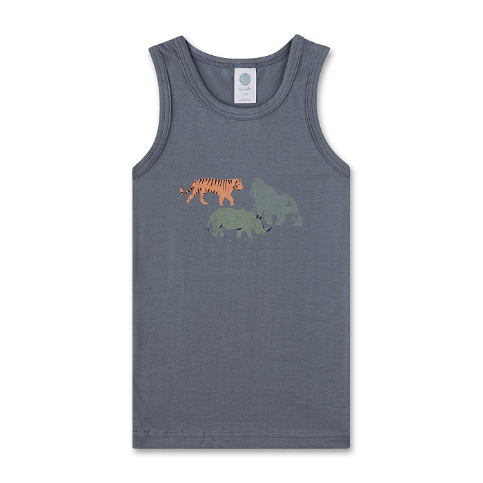 Майка Sanetta – это идеальный выбор для детей! Изготовленная из 95% натурального хлопка и 5% эластана, она украшена очаровательными изображениями диких животных: тигра, носорога и льва на сером фоне. Нежная текстура ткани и удобная посадка делают эту майку отличным выбором для вашего мальчика. На фотографиях видна аккуратная окантовка по краю и мягкая текстура ткани. Качество от итальянского бренда Sanetta и внимание к деталям делают эту майку отличным выбором для вашего ребенка!