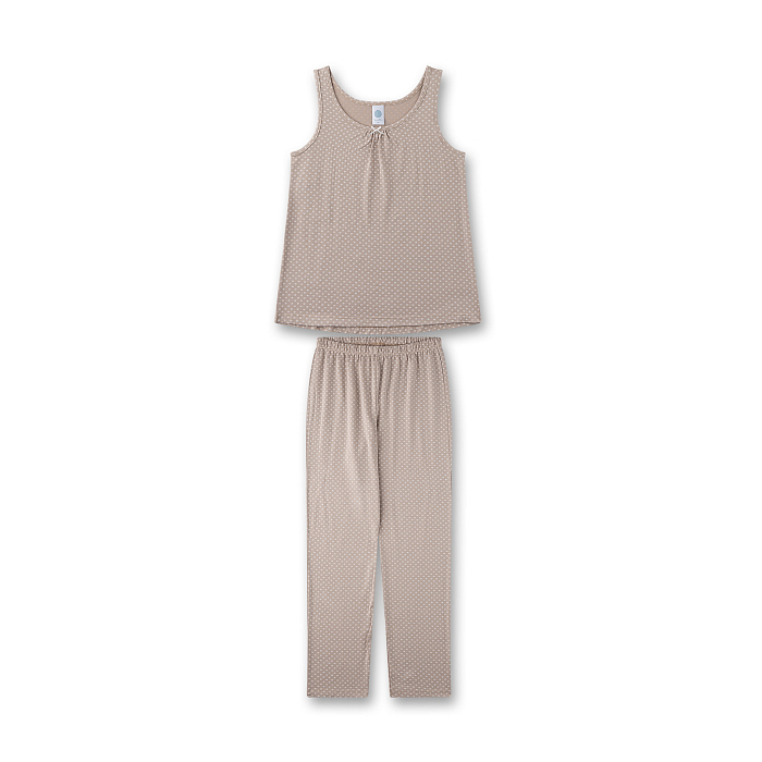 Пижама Sanetta – это идеальный выбор для девочек! Изготовленная из 95% модала и 5% эластана, она украшена мелкими белыми точками на бежевом фоне. Нежная ткань с эластичной резинкой по низу и рукавам создает комфорт и удобство. На фотографиях видна аккуратная белая точечная текстура, мягкая и приятная на ощупь. Качество от немецкого бренда Sanetta делает эту пижаму отличным выбором для вашего ребенка!
