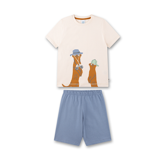 Пижама для мальчиков Sanetta – это идеальный выбор для детей! Изготовленная из 100% хлопка, она украшена очаровательным принтом двух морских животных – морских свинок. Светло-бежевая основа с яркими оранжевыми и коричневыми акцентами создает легкое и приятное настроение. На фотографиях видна аккуратная голубая окантовка по краю и мягкая текстура ткани. Качество от бренда из Германии и внимание к деталям делают эту пижаму отличным выбором для вашего ребенка!