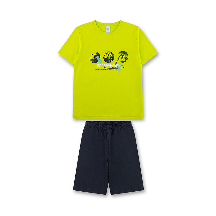 Пижама Sanetta – это идеальный выбор для мальчиков! Изготовленная из 100% хлопка, она украшена ярким салатовым принтом с изображением велосипеда и надписью "PROJECT BIKE". Нежная салатовая основа с контрастным принтом создает яркий и стильный образ. На фотографиях видна аккуратная салатовая окантовка по краю и мягкая текстура ткани. Качество от бренда Sanetta и внимание к деталям делают эту пижаму отличным выбором для вашего ребенка!
