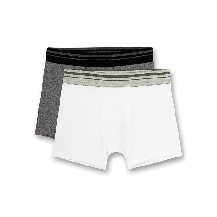 Трусы Sanetta – это идеальный выбор для мальчиков! Комплект из двух штук, один белый и один серый, изготовлен из 95% хлопка и 5% эластана. Нежная ткань обеспечивает комфорт и мягкость, а эластан обеспечивает эластичность. Белый трусы украшен черной полосой пояса, а серый – серой полосой пояса. На фотографиях видна аккуратная посадка и удобная посадка. Качество от бренда Sanetta и внимание к деталям делают эти трусы отличным выбором для вашего ребенка!
