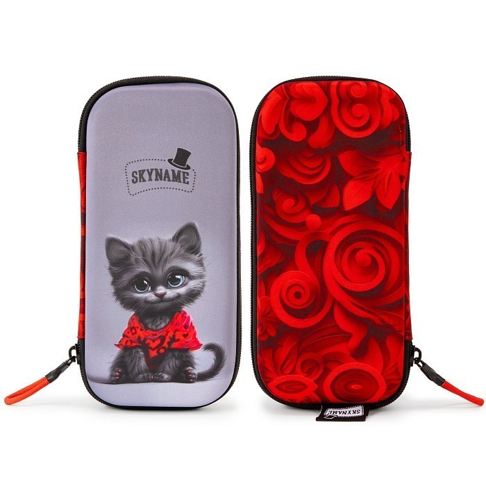 Жесткий пенал для девочек SkyName с принтом котика и роз