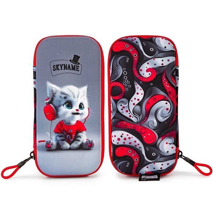 Жесткий черный пенал SkyName – отличное решение для девочек всех возрастов! Изготовлен из прочного материала, который обеспечивает надежную защиту для всех необходимых канцелярских принадлежностей. Милый принт с котенком в красных наушниках и абстрактными узорами делают этот пенал не только функциональным, но и очень стильным. Быстрая доставка СДЭК по всей России.
