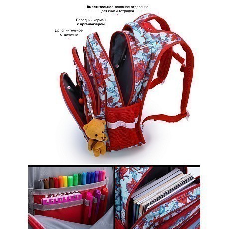 Рюкзак+брелок мишка SkyName – это идеальный выбор для вашего ребенка! Изготовленный из 100% полиэстера, он украшен ярким дизайном с изображением птиц и цветов на синем фоне. Удобная посадка и яркий брелок мишка делают этот рюкзак не только функциональным, но и очень привлекательным. На фотографиях видна аккуратная красная окантовка по краю и мягкая текстура ткани. Качество от бренда SkyName и внимание к деталям делают эту сумку отличным выбором для вашего ребенка!