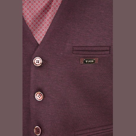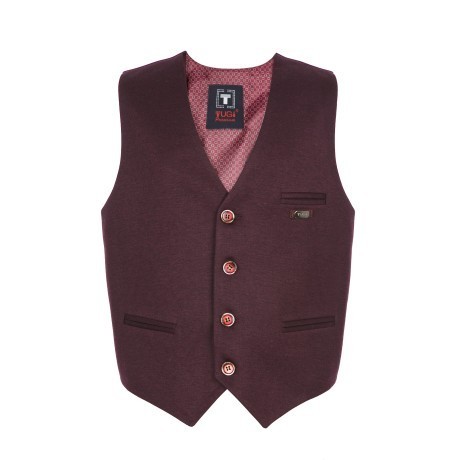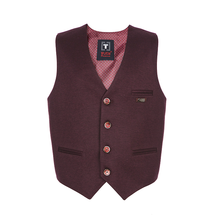 Жилет Tugi – идеальный аксессуар для вашего подростка! Бордовый цвет, 50% полиэстера, 47% вискозы и 3% эластана создают идеальную посадку и комфорт. Качество Турции и стильный дизайн делают этот жилет отличным выбором для вашего ребенка. На фото видна аккуратная застежка на пуговицы, карманы с логотипом и элегантная окантовка. Жилет идеально подойдет для формальных и повседневных мероприятий.