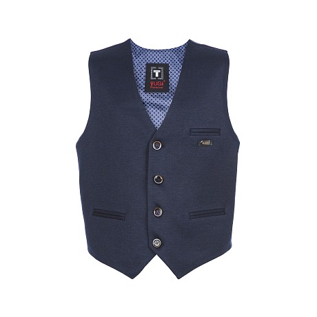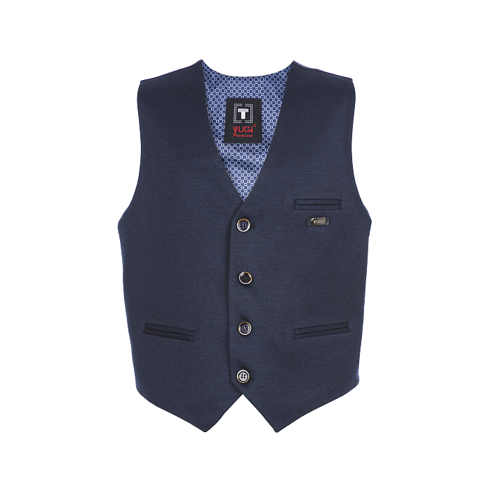 Текстильный жилет Tugi темно-синего цвета – идеальный вариант для вашего подростка! Изготовлен из высококачественного материала 50% полиэстера, 47% вискозы и 3% лайкры, что делает его гипоаллергенным и мягким на ощупь. Удобная посадка и эластичная резинка на спине обеспечивают комфорт и свободу движений. Жилет украшен логотипом бренда Tugi на воротнике и карманах, что делает его стильным и модным. На фотографиях видны удобные пуговицы и карманы с логотипом Tugi. Жилет Tugi – отличный выбор для вашего подростка!