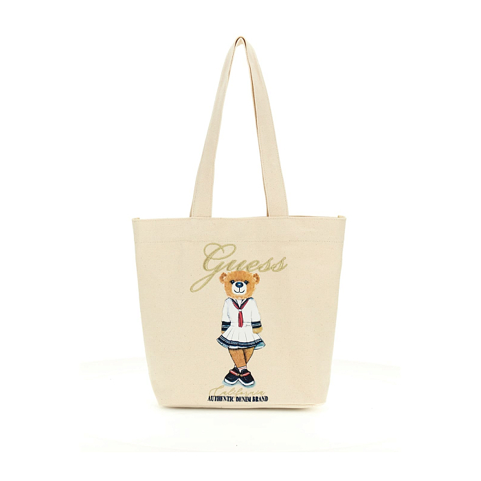Сумка для девочки Guess молочного цвета – это идеальный аксессуар для вашего ребенка! Изготовленная из 100% хлопка, она украшена очаровательным принтом медведя в морском стиле. Милый медведь в белом морском костюме с красной галстуком и коричневыми лапками создает нежный и уютный образ. Сумка выполнена из качественного хлопка, что делает ее мягким и приятным аксессуаром для вашего ребенка. На фотографиях видна аккуратная белая основа с милым принтом медведя и мягкая текстура ткани. Качество от бренда Guess и внимание к деталям делают эту сумку отличным выбором для вашего девочки!