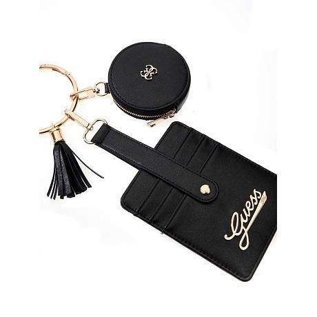 - 🎨 Дизайн: черный цвет, логотип Guess на кошельке и брелоке