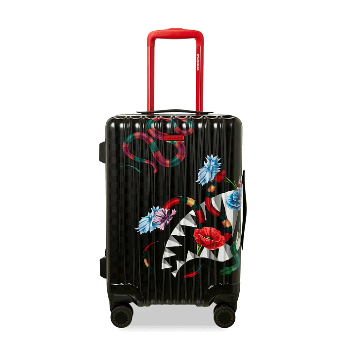 Чемодан Sprayground – это идеальный выбор для путешествий! Изготовлен из прочного черного поликарбоната и подкладки из полиэстера. Уникальный дизайн с принтом змей и цветов делает его не только функциональным, но и неповторимым. На фотографиях видны яркие красные и зеленые змеи, а также разноцветные цветы на черном фоне. Качество от бренда из США и внимание к деталям делают этот чемодан отличным выбором для вашего путешествия!