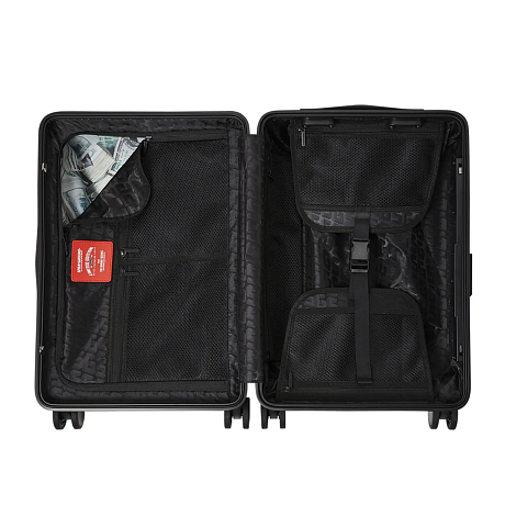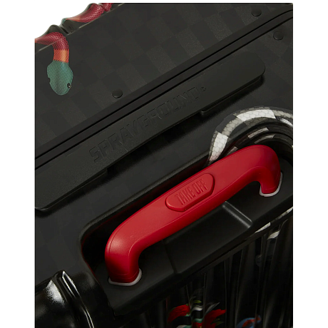 Чемодан Sprayground – это идеальный выбор для путешествий! Изготовлен из прочного черного поликарбоната и подкладки из полиэстера. Уникальный дизайн с принтом змей и цветов делает его не только функциональным, но и неповторимым. На фотографиях видны яркие красные и зеленые змеи, а также разноцветные цветы на черном фоне. Качество от бренда из США и внимание к деталям делают этот чемодан отличным выбором для вашего путешествия!