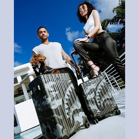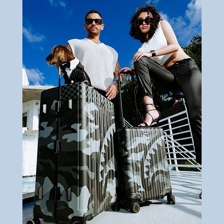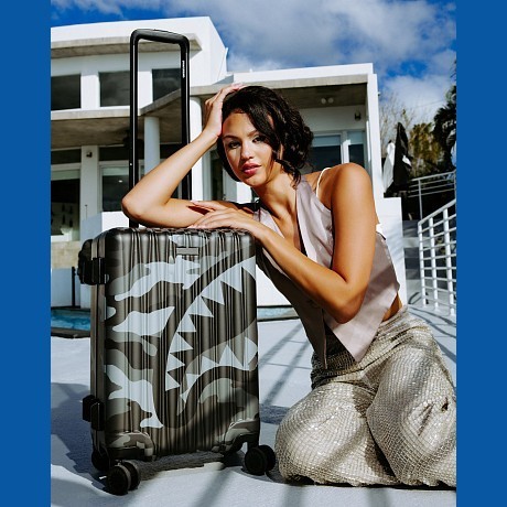 Чемодан с принтом камуфляж и акула