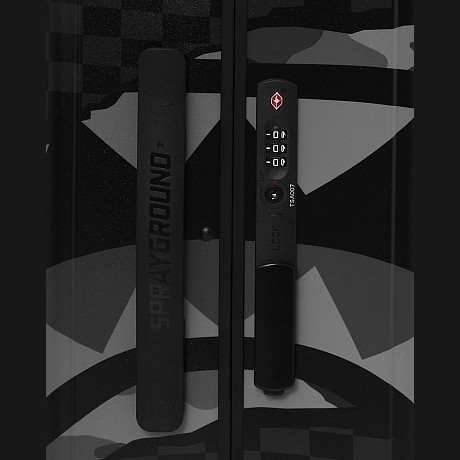 Чемодан Sprayground – это идеальный выбор для путешествий! Изготовлен из прочного 100% поликарбоната и подкладки из 100% полиэстера, что делает его долговечным и устойчивым к повреждениям. Камуфляжный принт и изображение акулы придают чемодану уникальный и модный вид. На фотографиях видна прочная ручка, удобная ручка для переноски и четкие логотипы бренда. Качество от бренда из США и внимание к деталям делают этот чемодан отличным выбором для путешествий!