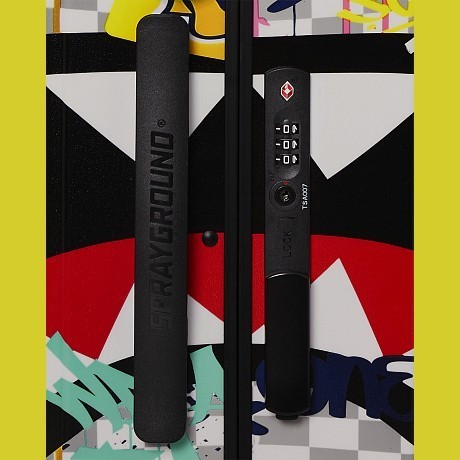 Чемодан Sprayground – это идеальный выбор для женщин, ценящих уникальность и практичность! Изготовлен из прочного 100% поликарбоната и подкладки из 100% полиэстера, он идеально подходит для путешествий. Яркий принт джунглей с надписями и граффити делает этот чемодан не только функциональным, но и стильным аксессуаром. На фотографиях видны яркие надписи, граффити и джунгли на фоне полосатой текстуры. Качество от бренда из США и внимание к деталям делают этот чемодан отличным выбором для вашего путешествия!