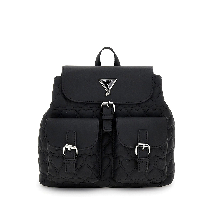 Черный рюкзак Guess – идеальный аксессуар для вашего ребенка! Изготовлен из высококачественного 100% полиуретана с подкладкой из 100% полиэстера. Рюкзак украшен элегантным дизайном с вышивкой в виде сердечек и металлическими пряжками. Качественные материалы и стильный дизайн делают этот рюкзак отличным выбором для девочек. На фотографиях видны элегантные сердечки на передней части и металлические пряжки на боковых карманах. Рюкзак Guess – это стиль и качество в одном!