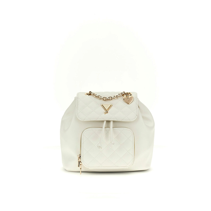 Рюкзак Guess кремового цвета – это идеальный выбор для стильных и модных девочек! Изготовлен из 100% полиуретана с подкладкой из полиэстера, он сочетает в себе элегантность и функциональность. Рюкзак украшен металлическими элементами, которые придают ему особый шарм. На фотографиях видны аккуратные швы, металлические цепочки и золотистые детали, которые делают этот рюкзак настоящим аксессуаром для модной девочки.
