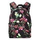 Рюкзак для девочки Molo с изысканным цветочным принтом на черном фоне. Изготовлен из 100% полиэстера переработанного и подкладки 100% полиэстера, что делает его экологически чистым и долговечным. Рюкзак украшен яркими розовыми и белыми цветами с зелеными листьями, создавая нежный и романтичный образ. На фото видны удобные ручки, мягкие швы и надежные застежки. Качество от датского бренда Molo и стильный дизайн делают этот рюкзак отличным выбором для девочек!