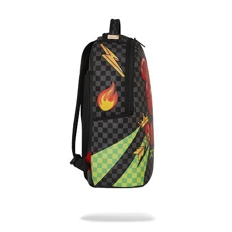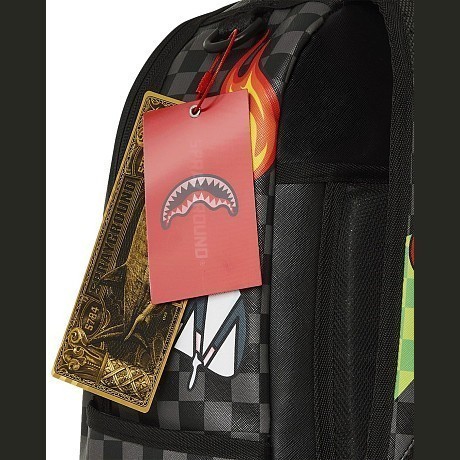 Рюкзак Sprayground Diablo – это идеальный выбор для стильных девушек! Изготовлен из 100% поливинилхлорида с подкладкой из полиэстера, он украшен ярким принтом черного медведя на черно-белой клетчатой основе. Медведь с короной, зелеными стрелами и огненными глазами создает неповторимую атмосферу. На фото видна аккуратная черная ручка и удобная застежка. Качество от бренда из США делает этот рюкзак отличным выбором для вашего образа!