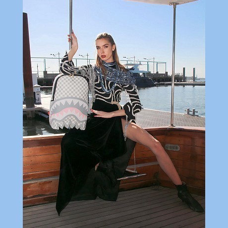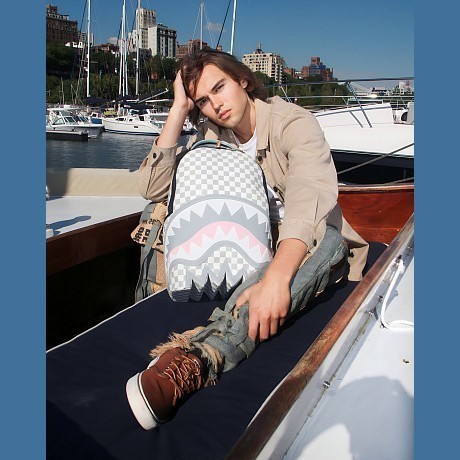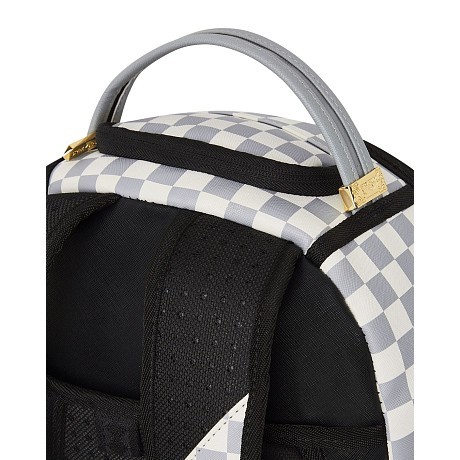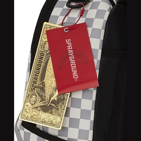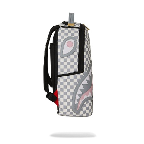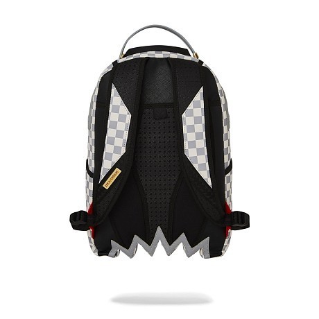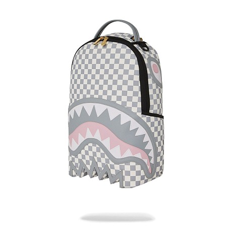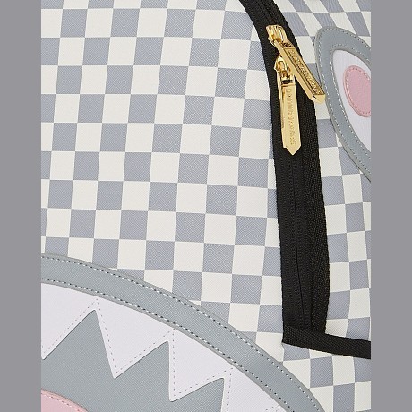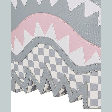 Рюкзак Sprayground с принтом акулы – это идеальный выбор для девушек! Изготовлен из 100% поливинилхлорида и подкладки из полиэстера, он оформлен уникальным серо-белым клетчатым узором. Принт акулы с открытым ртом и розовыми зубами создает яркий и запоминающийся образ. На фотографиях видна аккуратная клетчатая текстура ткани и металлические молнии. Качество от бренда из США делает этот рюкзак отличным выбором для вашего образа!
