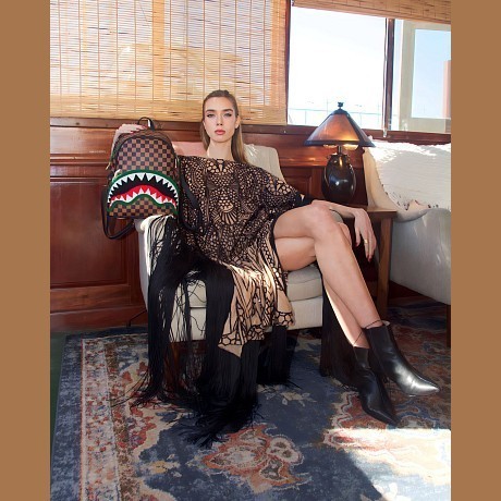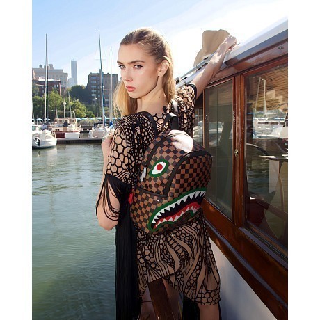 Рюкзак Sprayground – это идеальный выбор для девушек! Изготовлен из 100% поливинилхлорида с подкладкой из полиэстера, он украшен ярким принтом акулы с клетчатым узором. Клетчатый узор в черно-коричневых тонах с ярким принтом акулы создает модный и современный образ. На фотографиях видна аккуратная зеленая окантовка по краю и мягкая текстура ткани. Качество от бренда из США и внимание к деталям делают этот рюкзак отличным выбором для вашего образа!