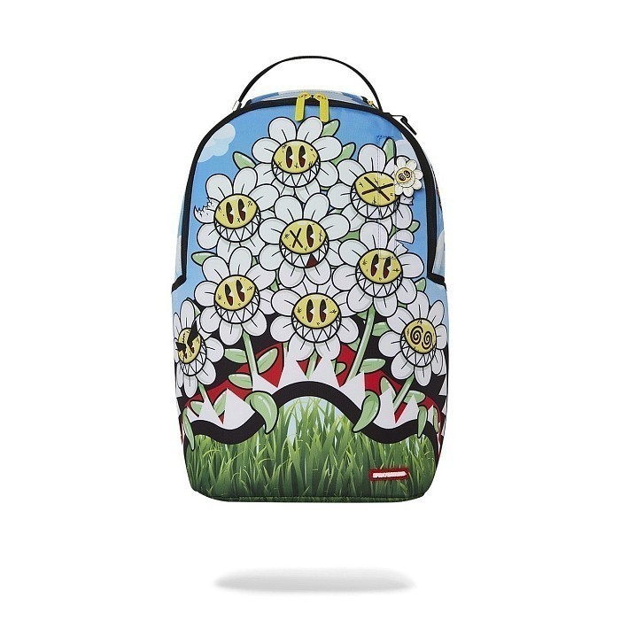 Рюкзак Sprayground с ярким принтом из белых цветов с желтыми лицами и зелеными листьями на голубом фоне – идеальный аксессуар для девушек! Изготовлен из 100% полиэстера, он надежен и долговечен. На фото видны яркие цветы с забавными лицами, зеленые листья и небольшие белые облака на голубом фоне. Рюкзак имеет удобную ручку для переноски и прочную застежку. Качество от бренда из США делает этот рюкзак отличным выбором для стильных девушек!