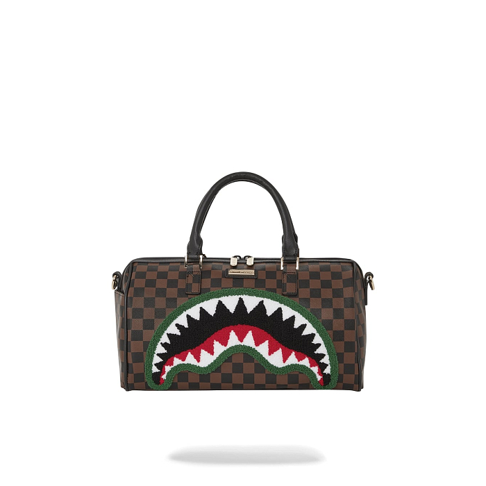Сумка Sprayground – это идеальный выбор для современных женщин! Изготовленная из 100% поливинилхлорида с подкладкой из полиэстера, она украшена ярким принтом акулы на клетчатом фоне. Классический черно-коричневый цвет с красными зубами и зелеными щеками делает эту сумку не только стильной, но и запоминающейся. На фотографиях видна аккуратная клетчатая текстура ткани и черная ручка. Качество от бренда из США и внимание к деталям делают эту сумку отличным выбором для вашего образа!