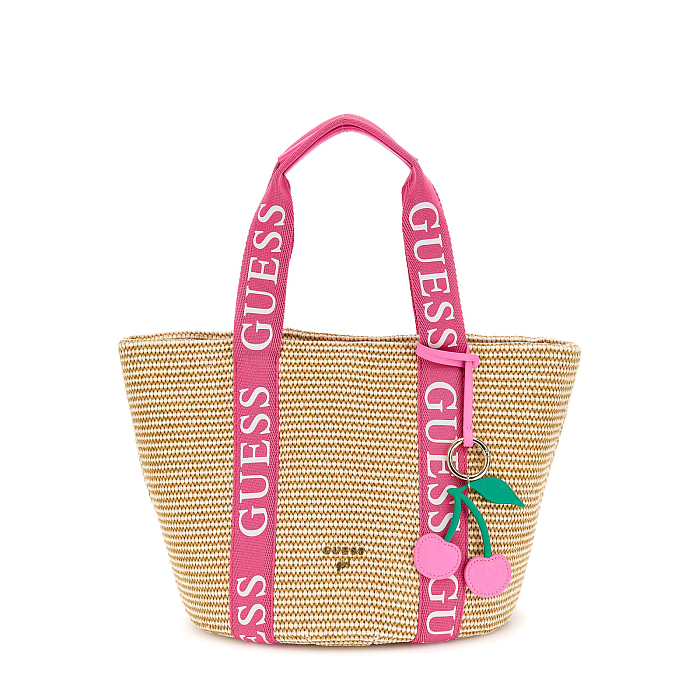 Сумка для девочки Guess фуксия – это идеальный аксессуар для вашего ребенка! Изготовлена из 49% полипропилен, 25% хлопок, 19% полиэстер, 7% вискоза, с подкладкой 100% полиэстер и отделкой 100% полиуретан. Сумка украшена принтом вишни и логотипом Guess, что делает ее не только функциональной, но и очень стильной. На фотографиях видна аккуратная вишневая отделка и логотип Guess на ручках. Качество от бренда Guess и внимание к деталям делают эту сумку отличным выбором для вашего ребенка!