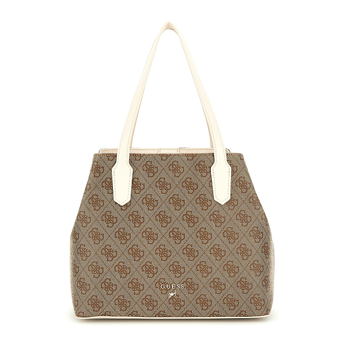 Сумка для девочки Guess бежевого цвета – это идеальный аксессуар для вашего ребенка! Изготовлена из 100% полиуретана и подкладки из 100% полиэстера, что делает ее прочной и долговечной. Брендовый принт Guess на бежевом фоне придает сумке уникальный и модный вид. На фотографиях видно, как сумка выполнена из качественного материала с брендовым логотипом на передней части. Удобные ручки из искусственной кожи делают ее комфортной для ношения. Сумка для девочки Guess – отличный выбор для стильных и практичных девочек!