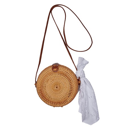 • 🎨 Дизайн: натуральный ротанг, белый шарф с цветочным узором, кожаная застежка