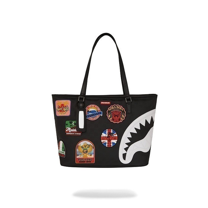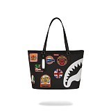 Сумка Sprayground – это идеальный выбор для мужчин! Изготовленная из 100% поливинилхлорида с подкладкой из 100% полиэстера, она украшена яркими принтами различных стран мира. Черный фон с разноцветными эмблемами создает модный и оригинальный образ. На фотографиях видны разнообразные принты, включая символы стран, эмблемы и даже изображение акулы. Сумка имеет удобные длинные ручки и прочный материал, который обеспечивает долговечность и комфорт в использовании. Качество от бренда из США делает эту сумку отличным выбором для вашего стиля!